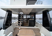 The latest addition to the Polish shipyard in Radomsko is 13.5 m long and 4.30 m wide. These dimensions, combined with a unique design, provide unprecedented usable space. A true apartment on the water, it can be equipped with a wide variety of amenities for optimal comfort, even on long cruises.